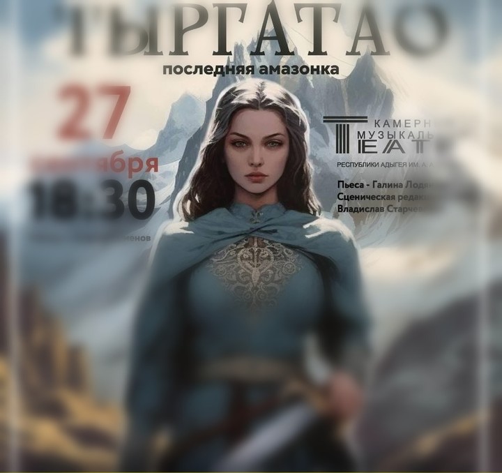 Двадцать седьмого сентября в Филармонии КОРА в Майкопе зрителям впервые представят мюзикл «Тыргатао — последняя амазонка». Как сообщает агентство «Адыгея сегодня», это постановка Камерного музыкального театра Республики Адыгея им. А.А. Ханаху.